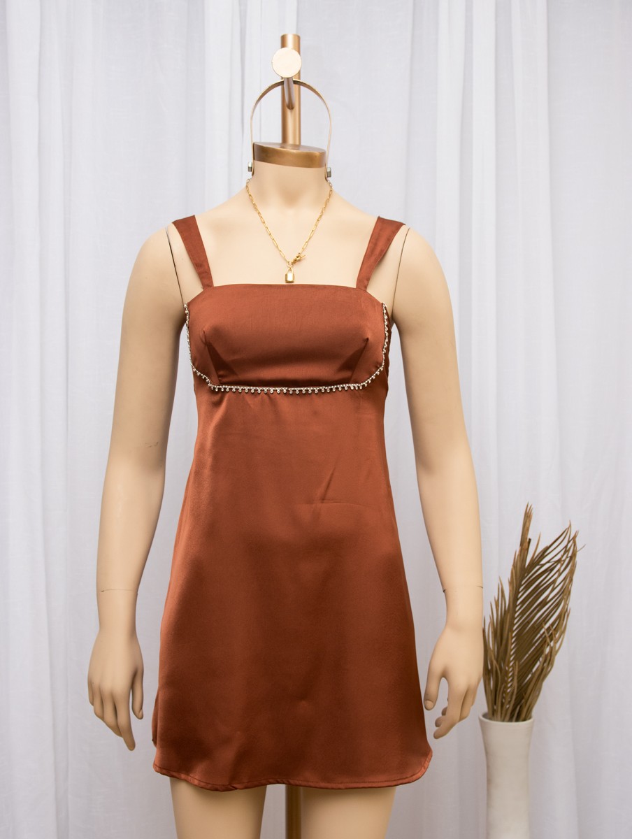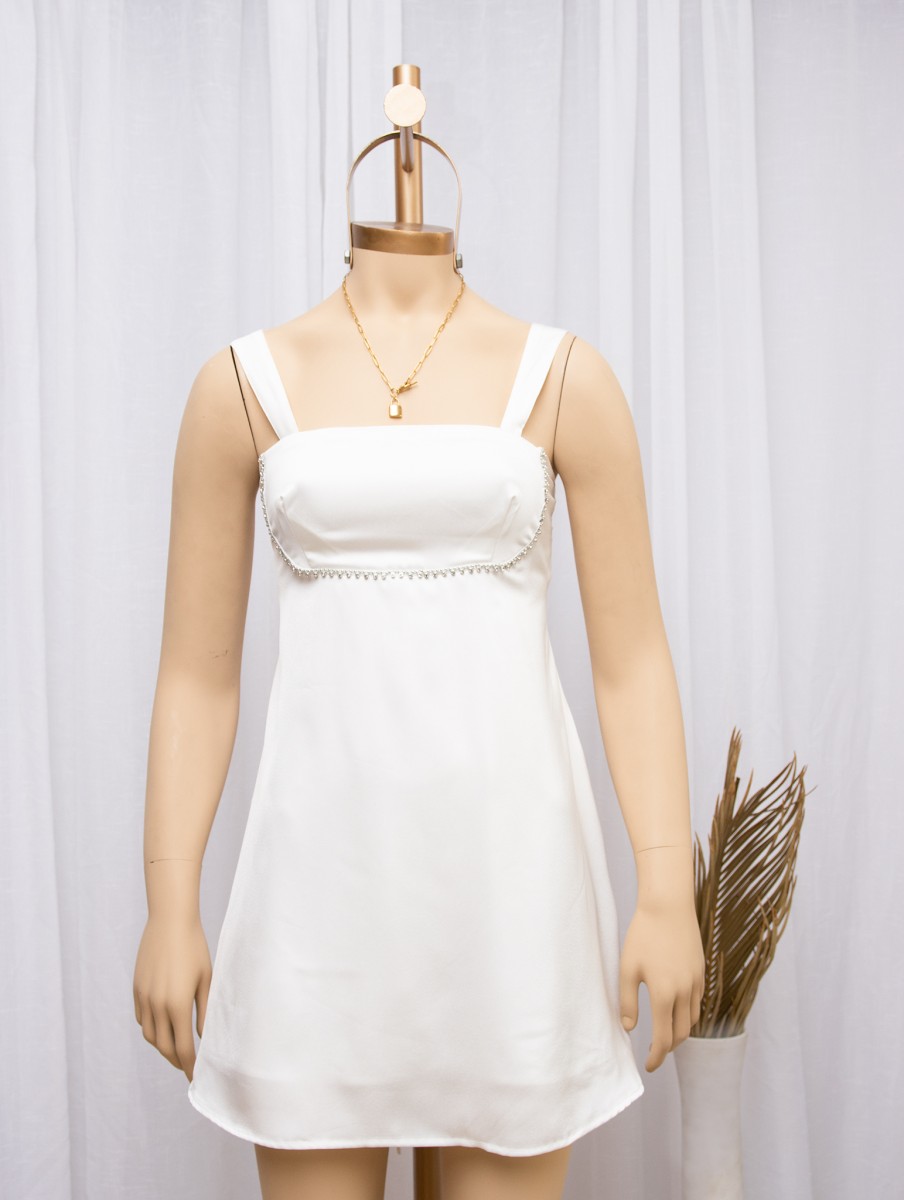 - Vestido escote cuadrado ,detalle de corte bajo busto con pinza