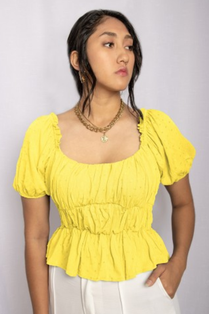 - Blusa escote cuadrado ,detalle de corte bajo busto con fruncido
