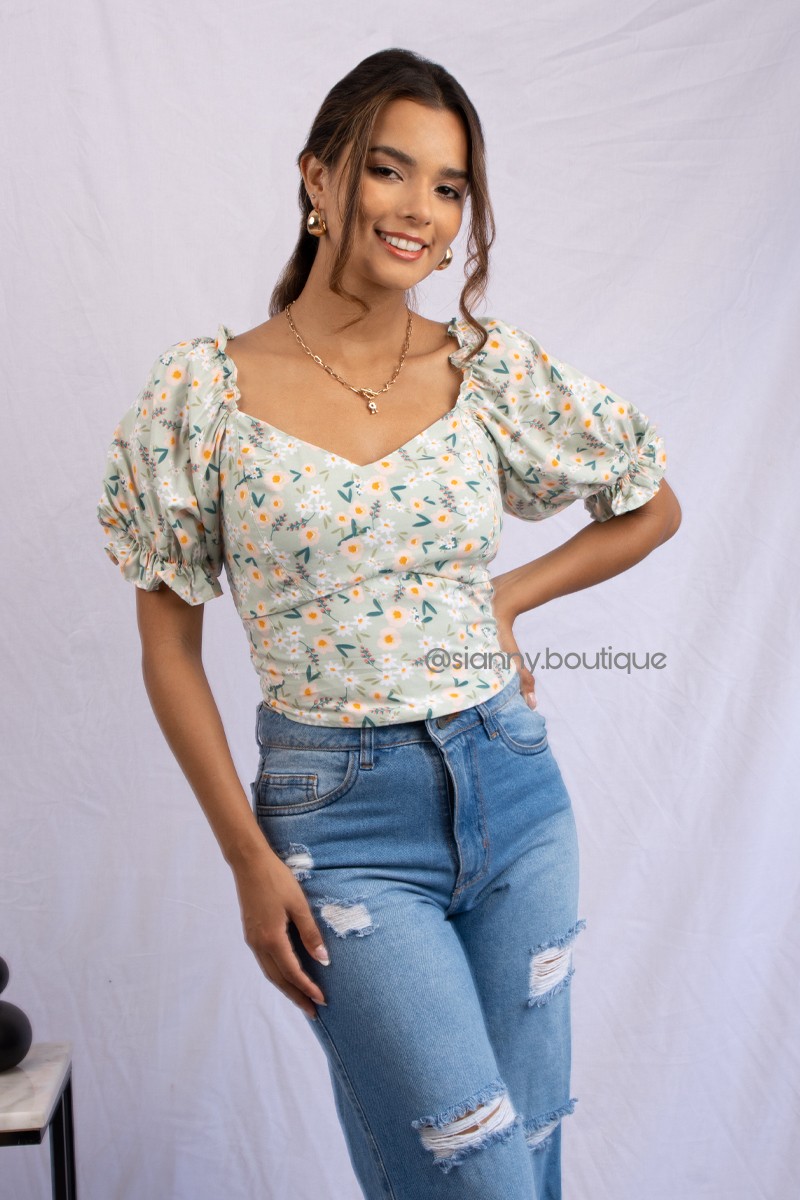 _ Manga corta , de estilo princesa con elastico en el puño .